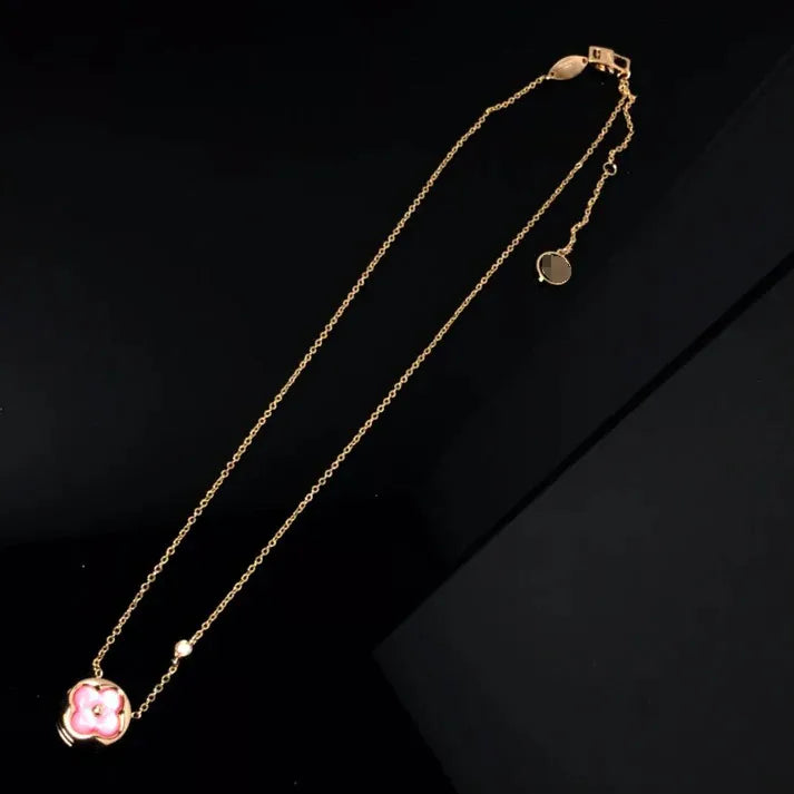 Pomuse Halskette mit Blütenmotiv, Rosa und Sonne, Gold