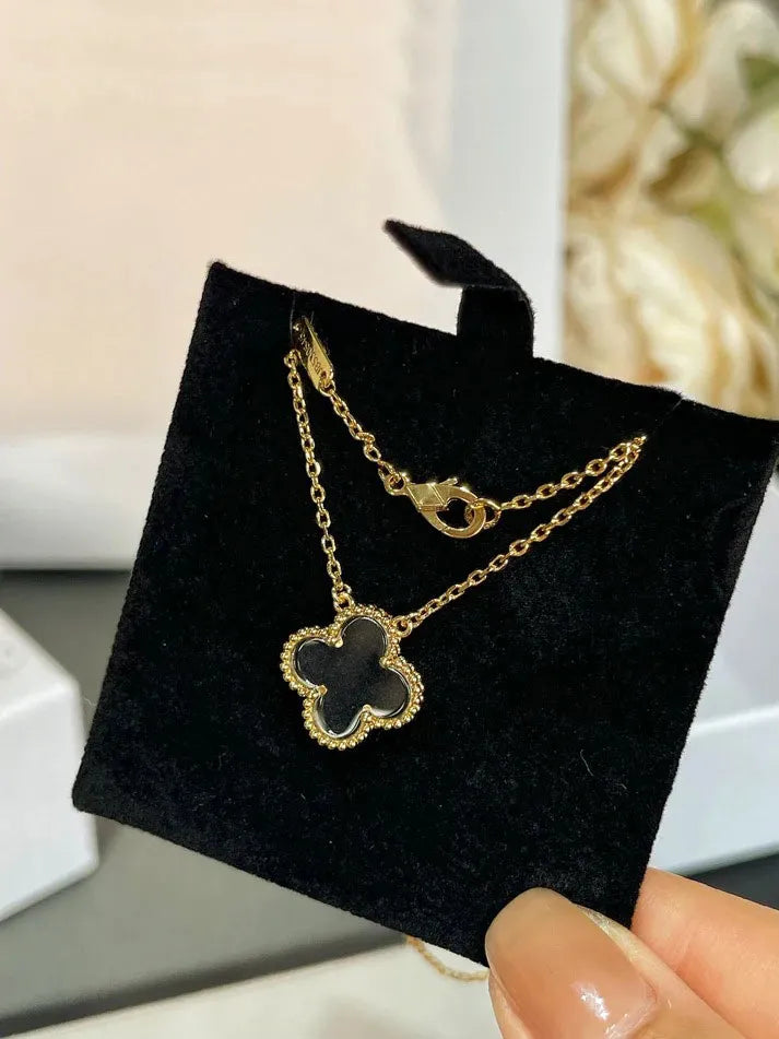Pomuse CLOVER ROCK CRYSTAL ROSE GOLD NECKLACE